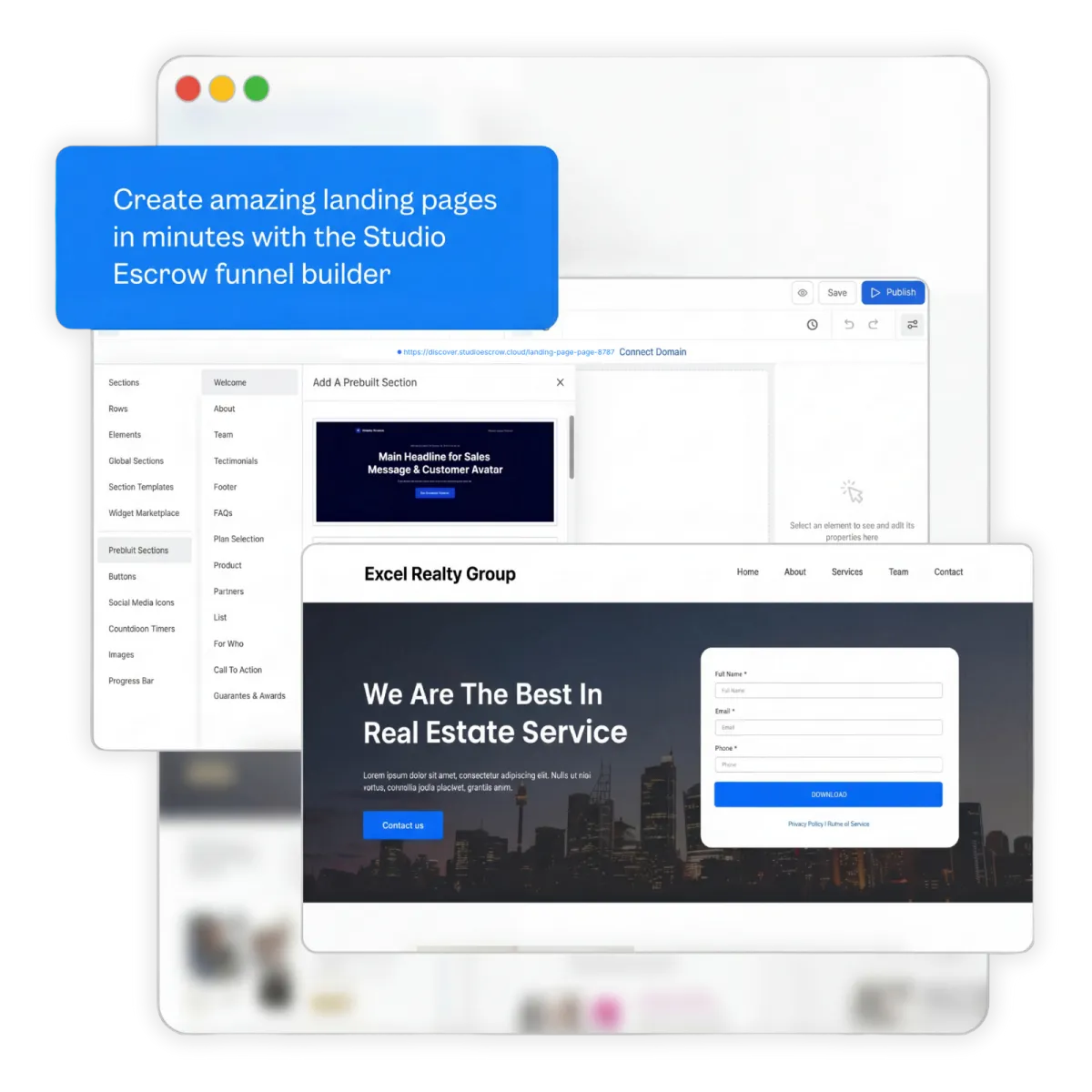 Studio Escrow consolidates your website, landing pages, funnels, CRM, marketing automation, messaging, AI agents, and reporting into one centralized platform. Instead of juggling multiple subscriptions and logins, your entire business operates from a single system—reducing software costs, simplifying operations, and eliminating tool overlap.
